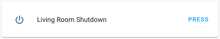 The shutdown button platform allows you to shutdown your node remotely through Home Assistant. It does this by putting the node into deep sleep mode with no wakeup source selected. After enabling, the only way to startup the ESP again is by pressing the reset button or restarting the power supply.